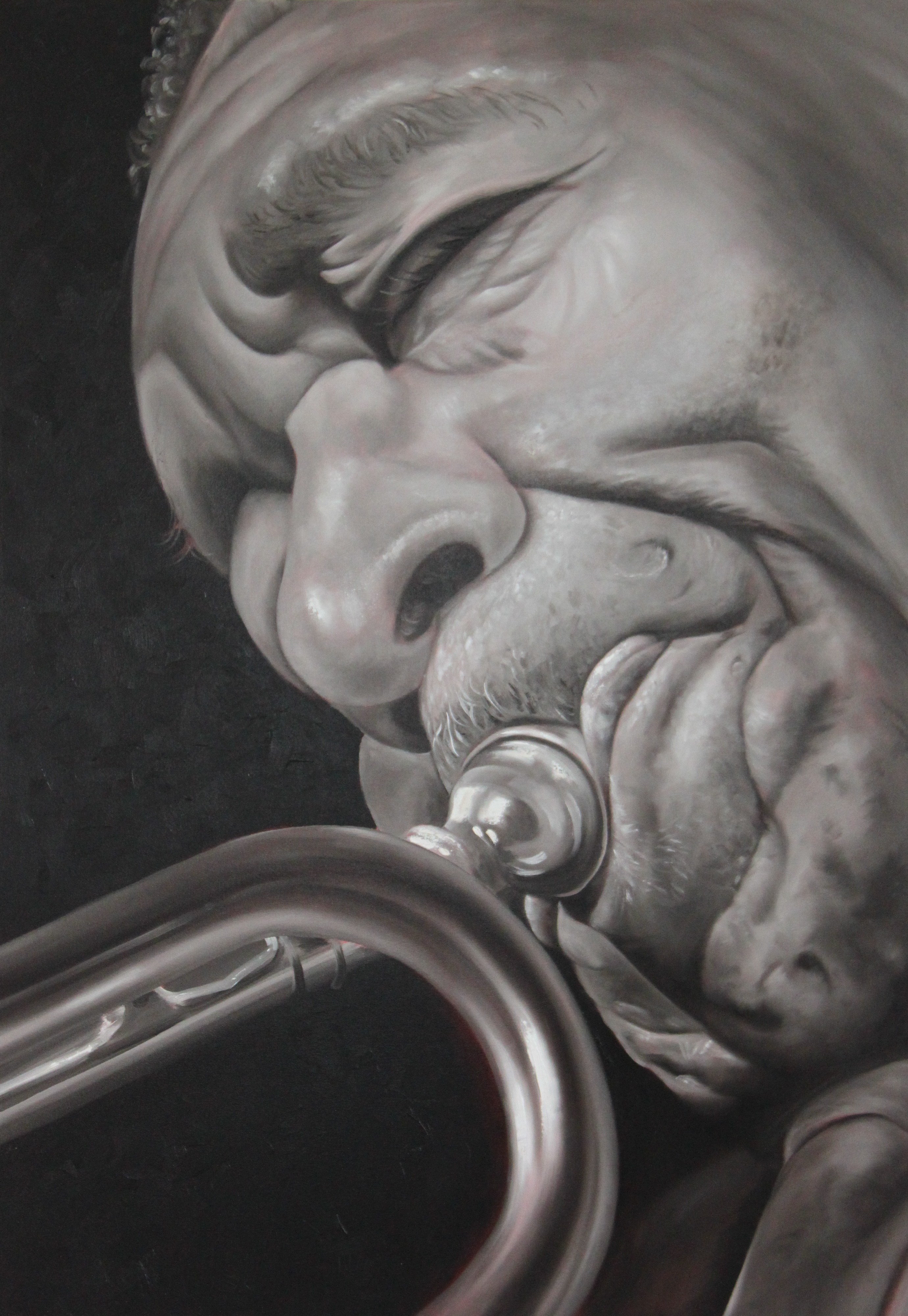 In een multimediale wereld (mp3, ipod, cd, radio etc. ) zien we niet meer de mens achter de muziek, die probeert een emotie over te brengen. Ik ben zelf muzikante en ken dus zeer goed deze emoties; In mijn werken laat ik de muziek even weg waardoor men zich volledig kan concentreren op de muzikant zelf en zijn emotie. Volg momenteel een opleiding in St Lucas 'model' bij L. Strijbos en opleiding olieverf bij Cindy Whright
