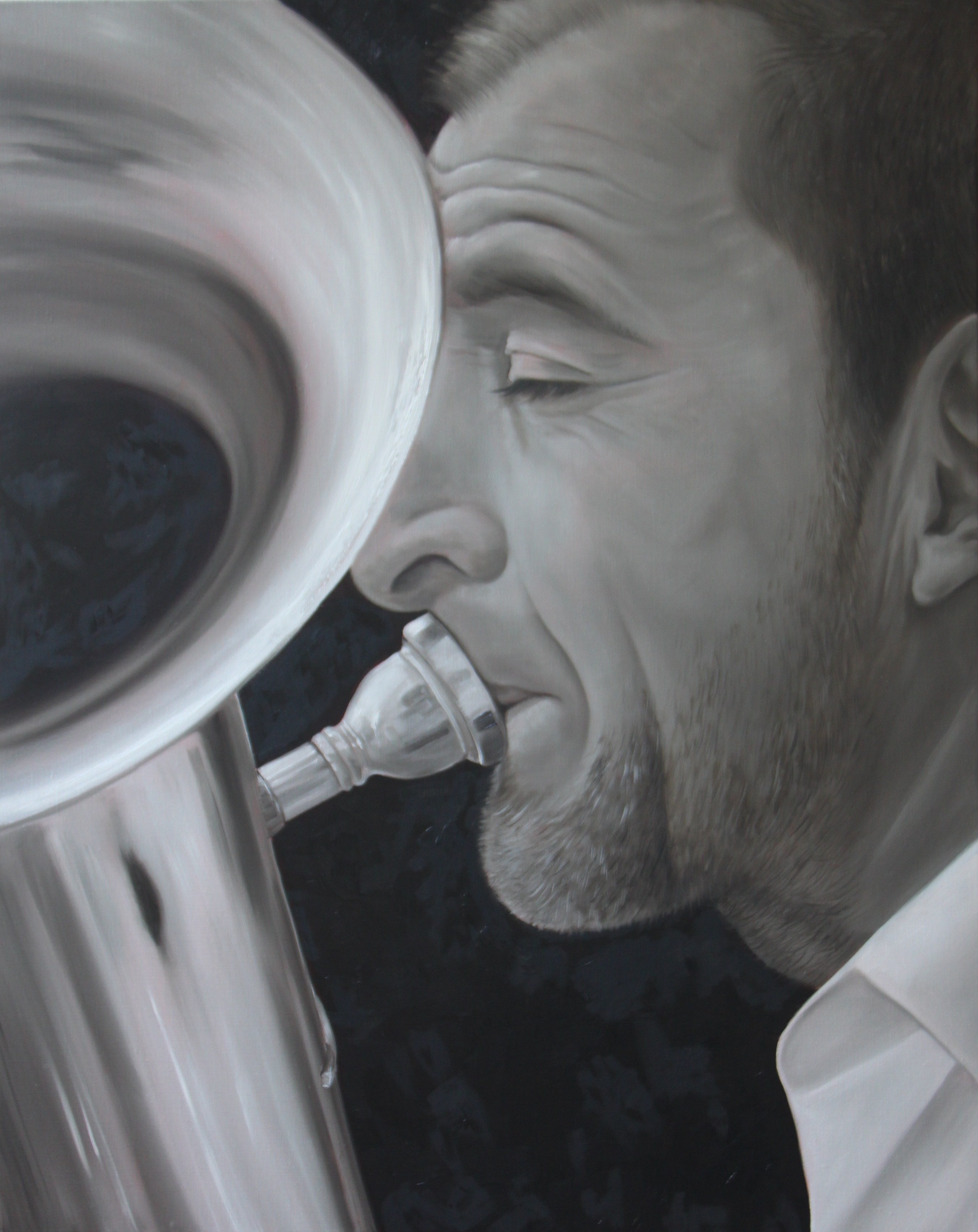 In een multimediale wereld (mp3, ipod, cd, radio etc. ) zien we niet meer de mens achter de muziek, die probeert een emotie over te brengen. Ik ben zelf muzikante en ken dus zeer goed deze emoties; In mijn werken laat ik de muziek even weg waardoor men zich volledig kan concentreren op de muzikant zelf en zijn emotie. Volg momenteel een opleiding in St Lucas 'model' bij L. Strijbos en opleiding olieverf bij Cindy Whright