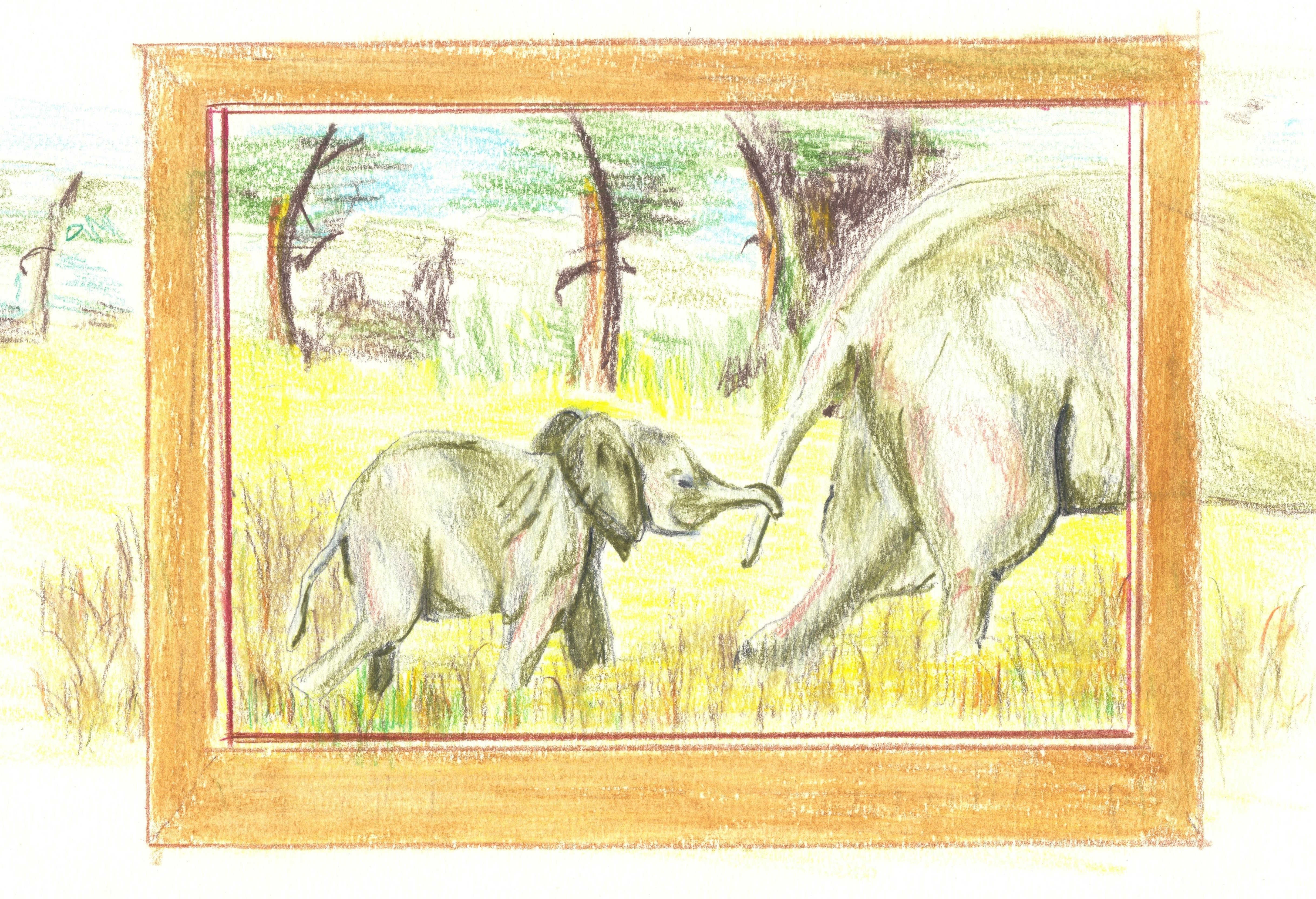 Olifant met baby wandelen het schilderij uit