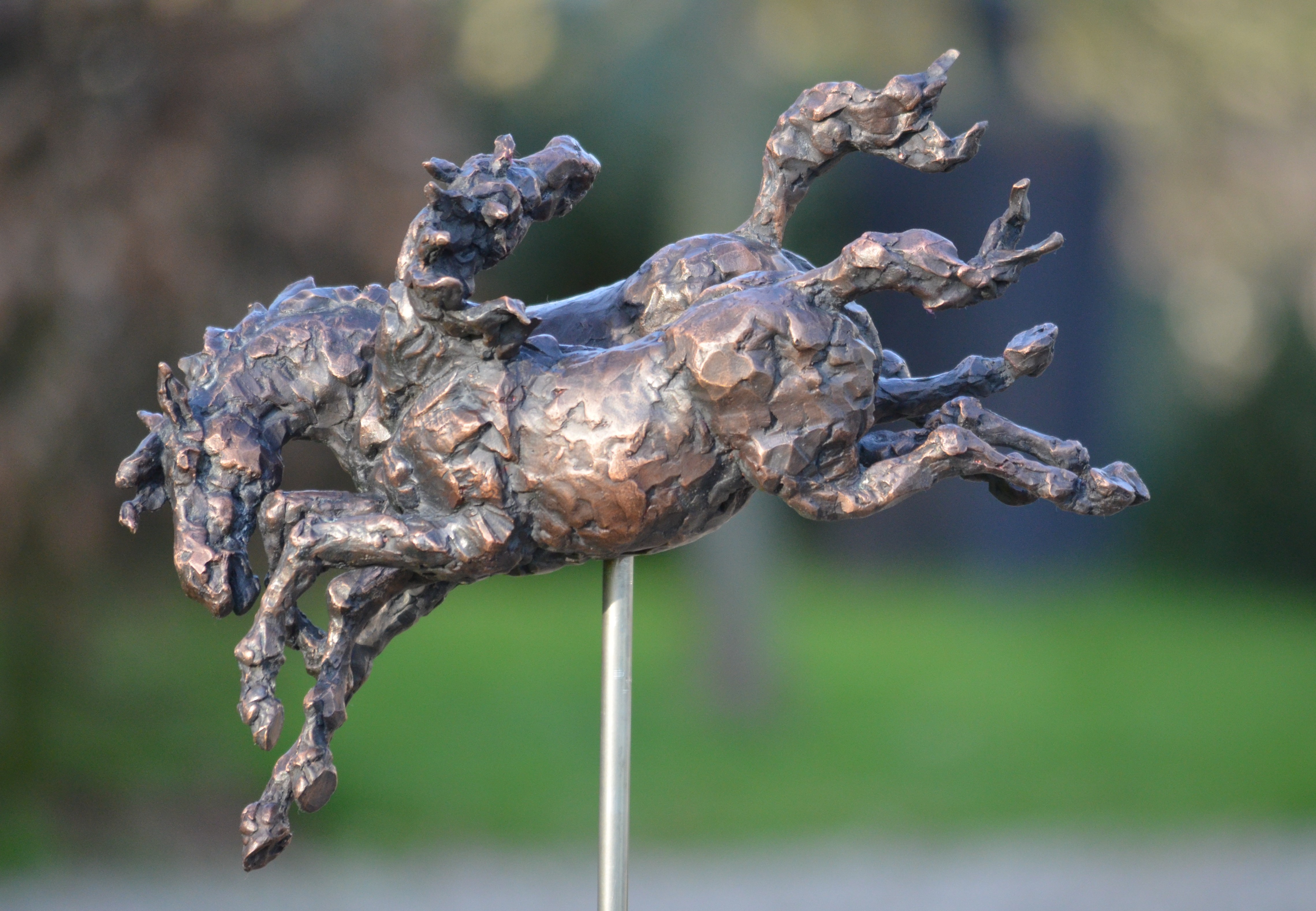 Uit -gedeeltelijke- onvrede over Avances no.1 gemaakt. Spelende paarden, een eindeloze bron van inspiratie.......Het beeld staat op een hoge sokkel van rvs en Belgisch hardsteen. Niet meer beschikbaar
