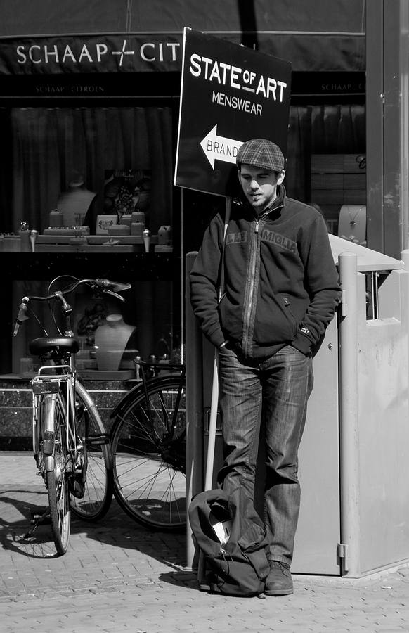 Man Wachten Wachtend Mannen Dagelijks Leven Tafereel Zwartwit Daily Life Blackandwhite Vierkant Square Waiting Men City Stad