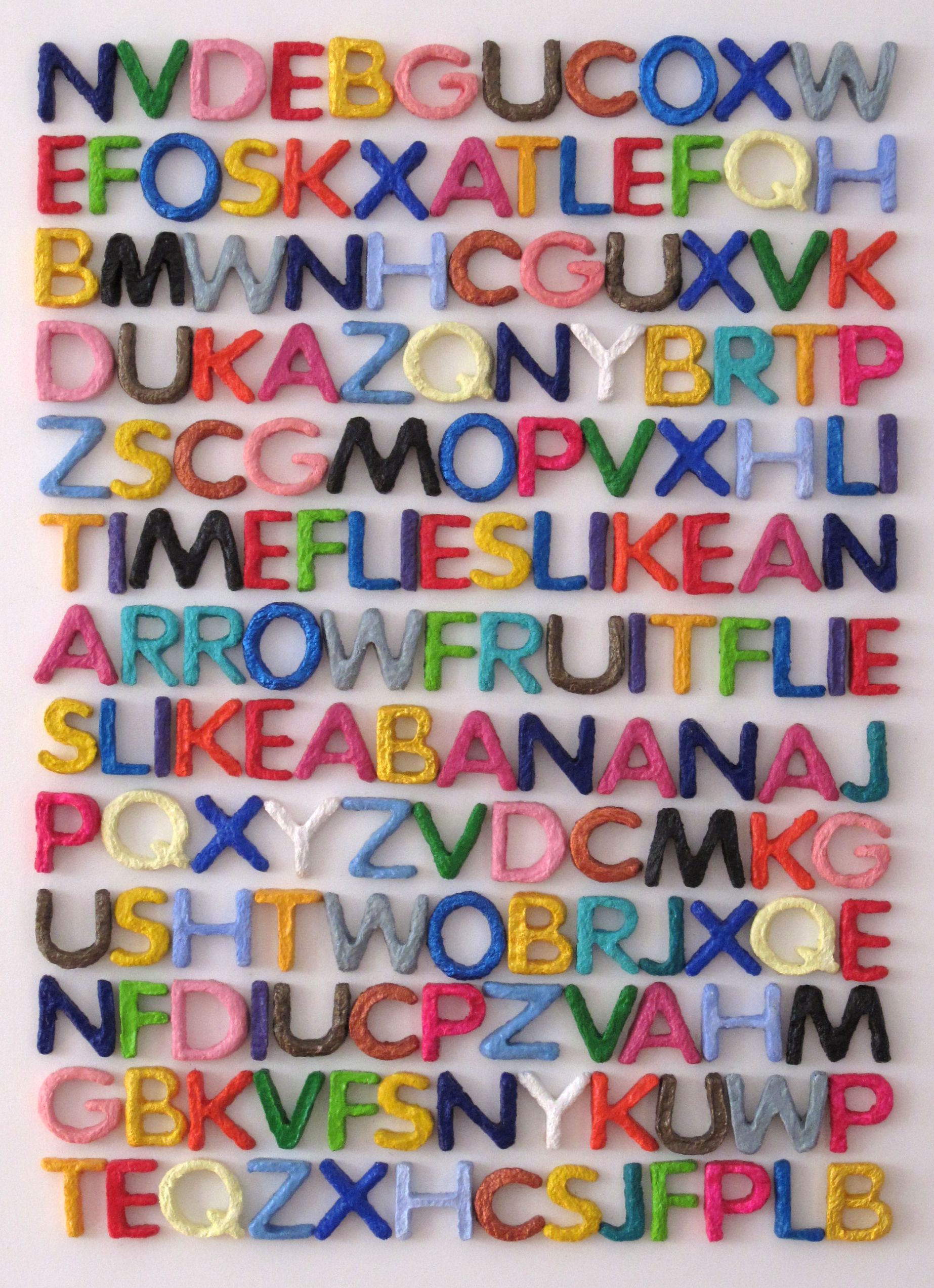 Time Flies Like An Arrow, Fruit Flies Like A Banana ingebed in een afabetje van papierpulp