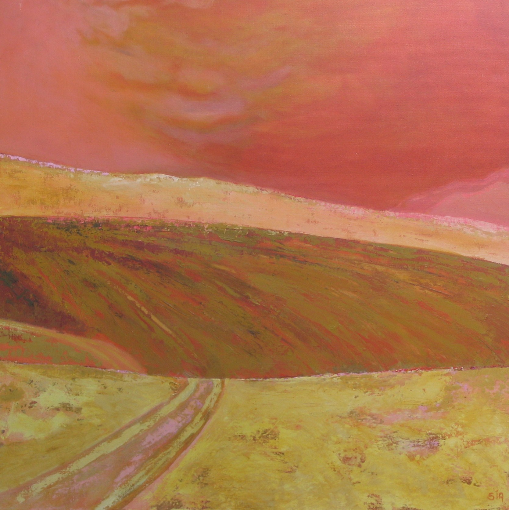 Mijn schilderijen zijn in acrylverf op doek of paneel, in een beperkt kleurenpalet. Ik heb de Rietveld Academie afgerond: binnenhuisarchitectuur. Schilderlessen heb ik gevolgd op de Gooische Academie.