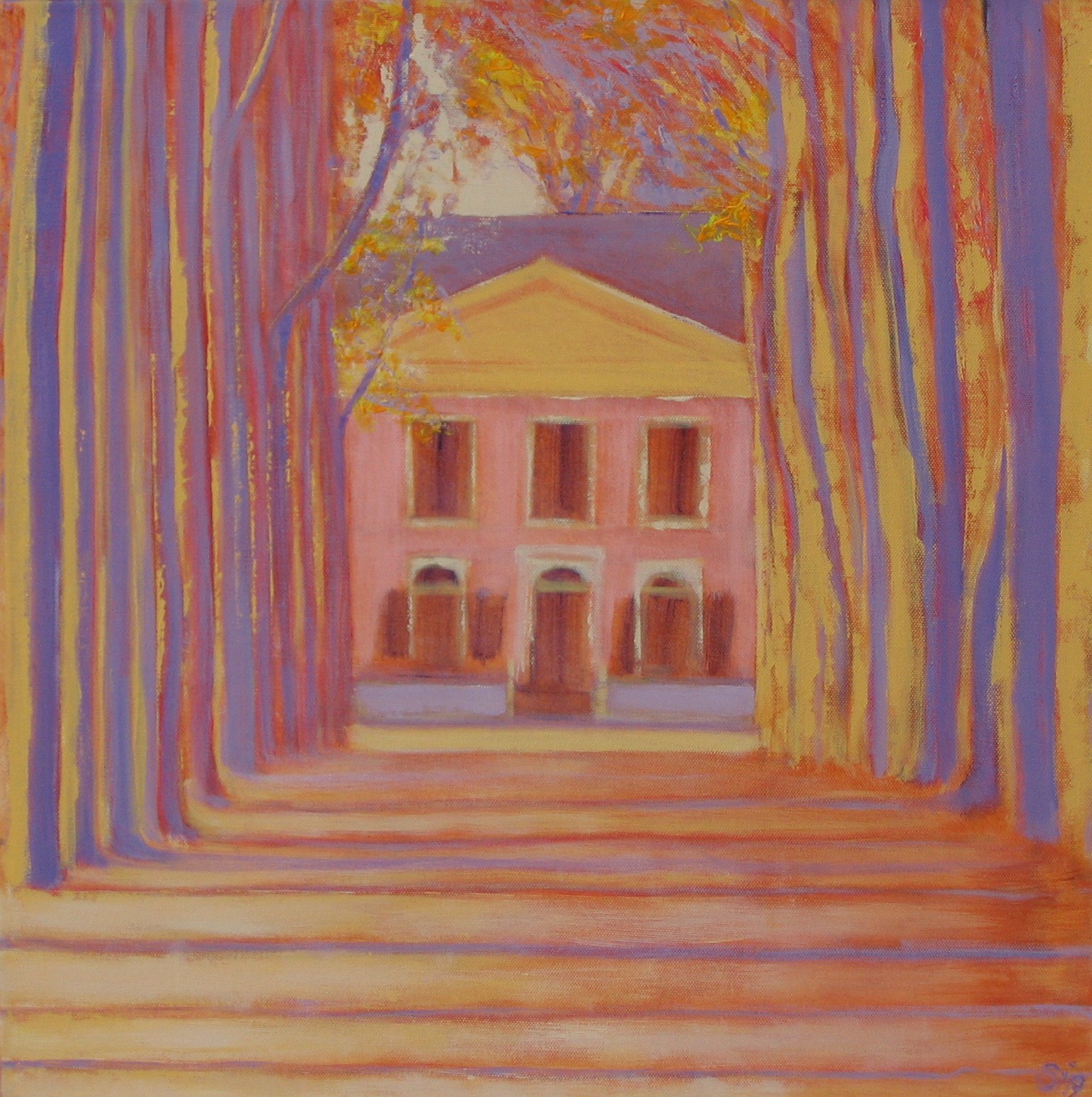Mijn schilderijen zijn in acrylverf op doek of paneel, in een beperkt kleurenpalet. Ik heb de Rietveld Academie afgerond: binnenhuisarchitectuur. Schilderlessen heb ik gevolgd op de Gooische Academie.