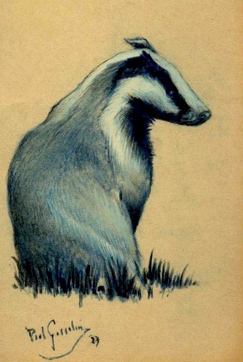 Pastel tekening van een Das door de Belgische kunstenaar Paul Gosselin