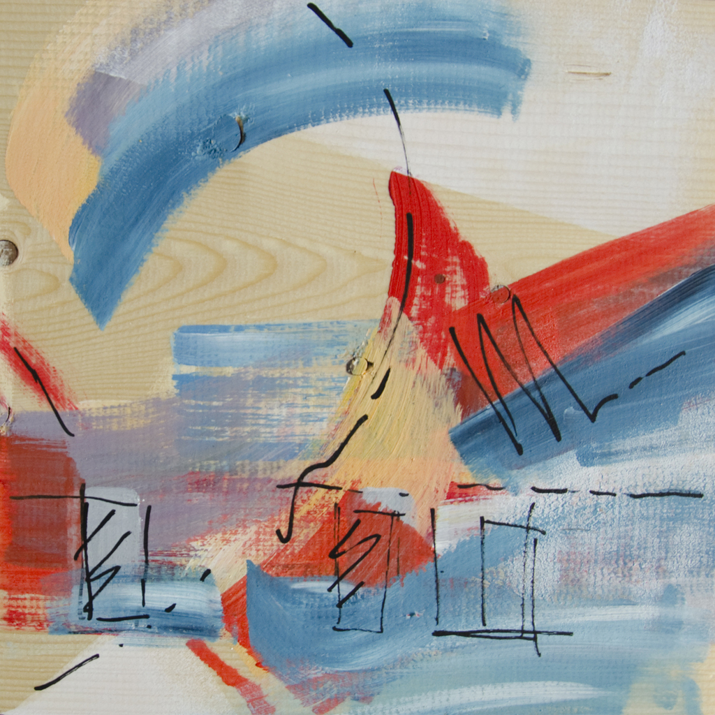 Schilderij Abstract Acryl Hout Art Mixed Media Krijt Pen Architectuur Kleur Pentekening