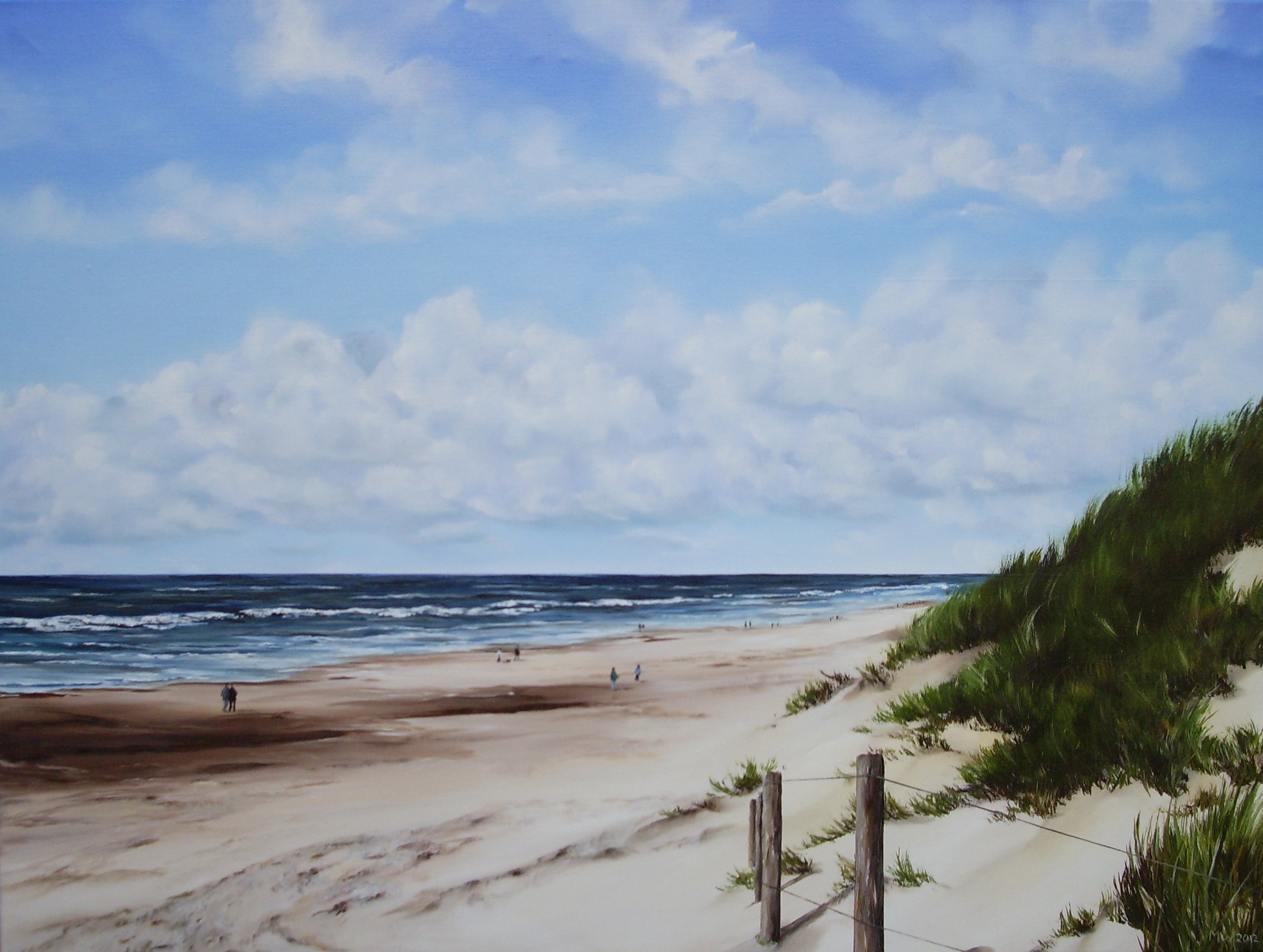 olieverfschilderij van een zee en duin gezicht.