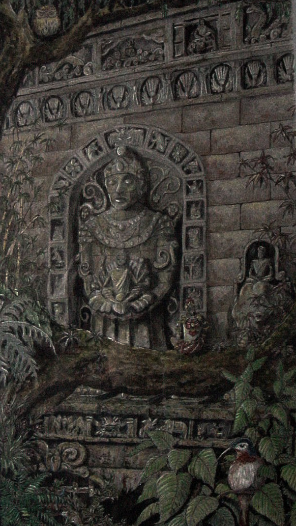 Aquarel Jungle Tempel Indonesië Oerwoud Java Wayang Hindoeïsme Mahabharata Ramayana