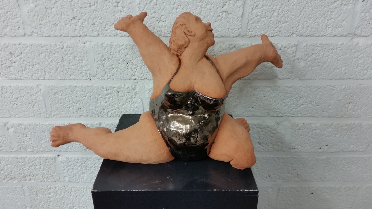 Dikke Vrouw Glazuur Brons Humor Keramiek Klei
