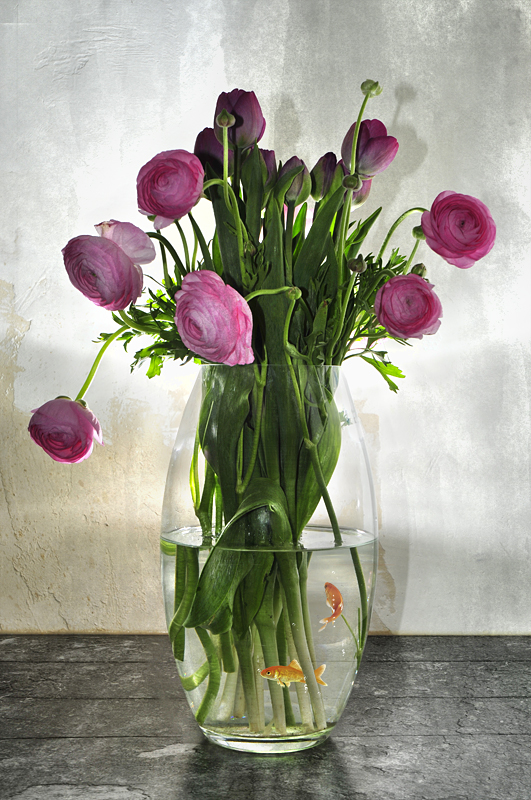 Zwemmen Vissen Goudvissen Bloemen Vaas Tulpen Photoshop Lifeware Fotografie