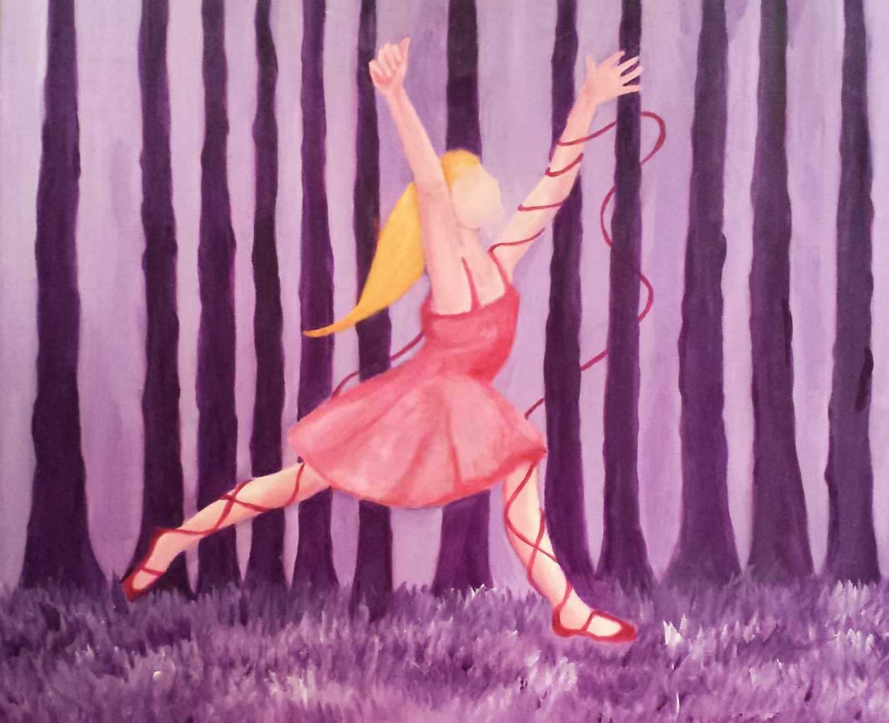 Danseres Sprookjes Bos Paars Rood Jurkje Fantasie Meisje Acryl