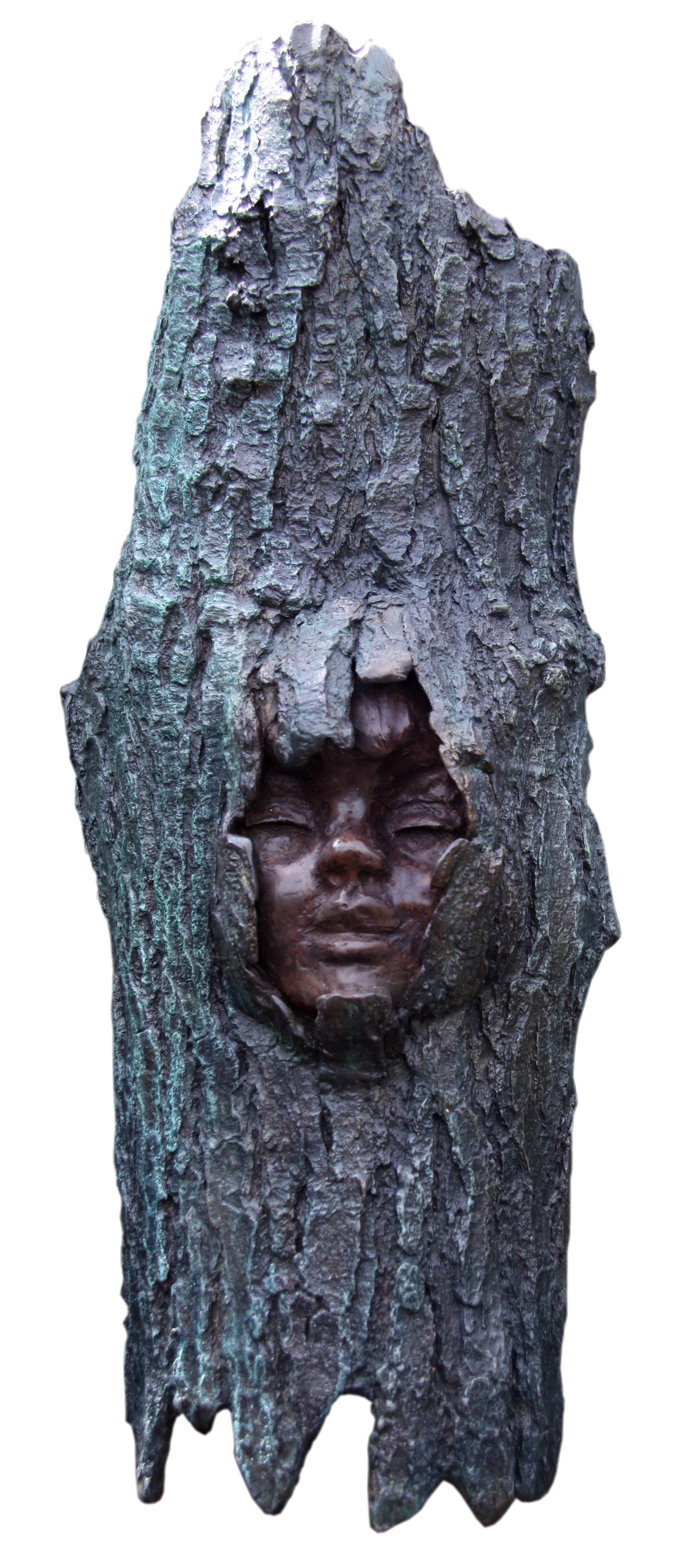 Boomschors met kindergezicht die slaapt. unicum van brons