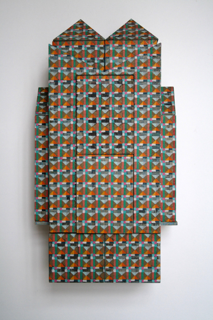 hangend object, hout papier olieverf.