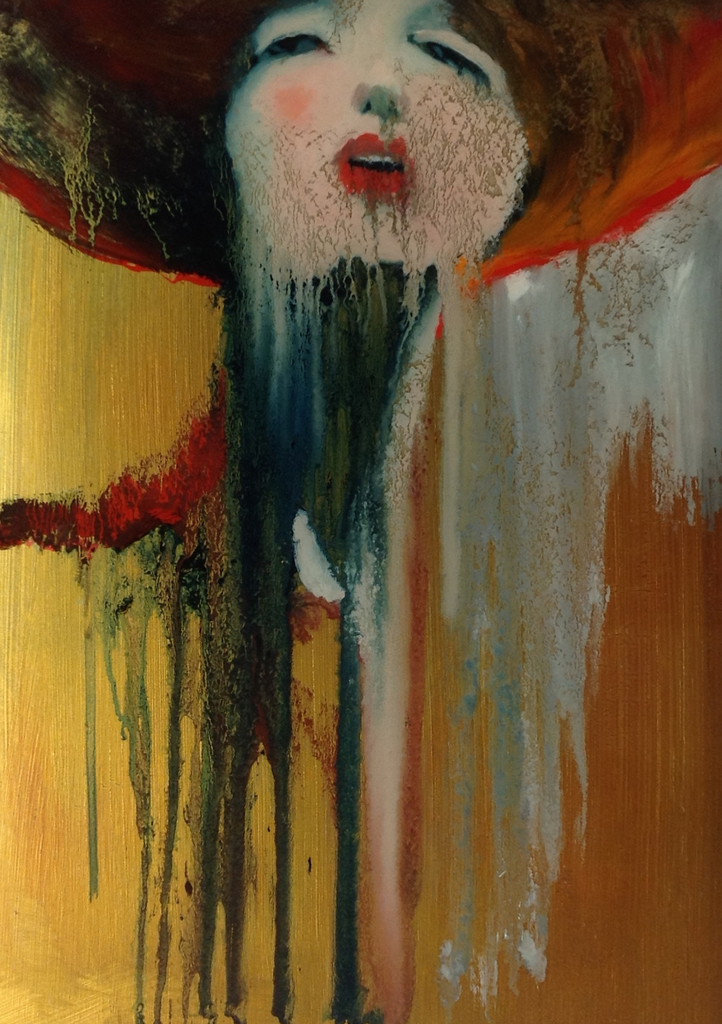 Rood Zwart Goud Vrouw Portret Glas Hoed