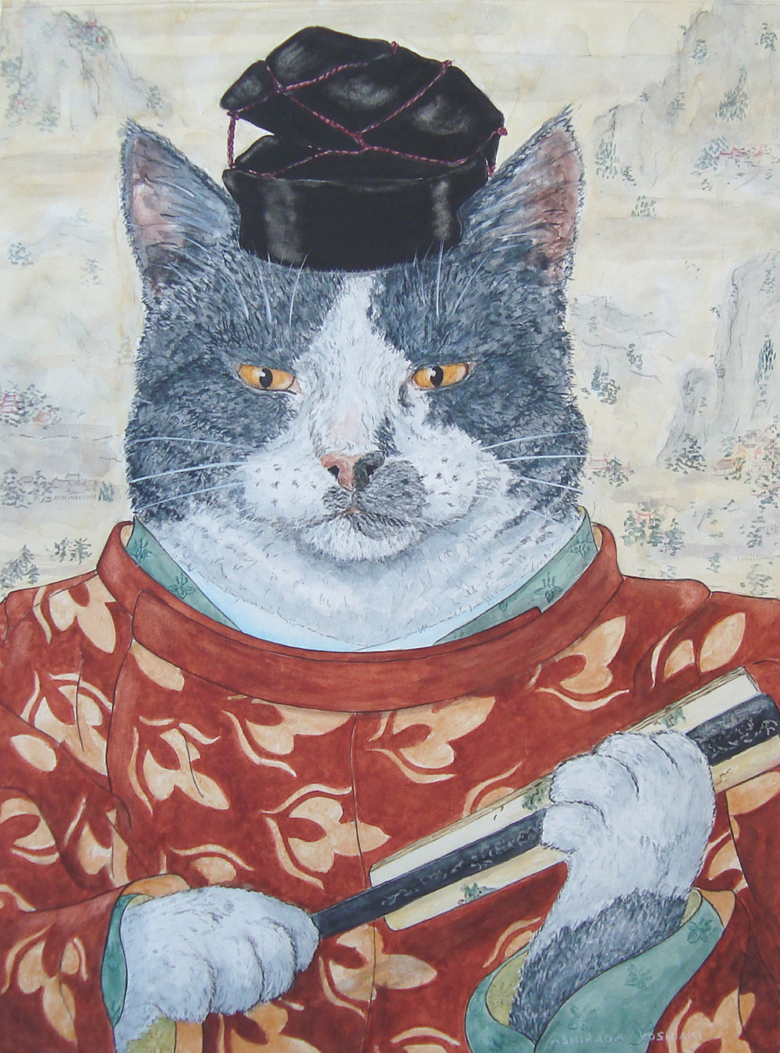 Portret Kat Aquarel Portrait Cat History Japan Ashikaga Yoshiaki Shogun