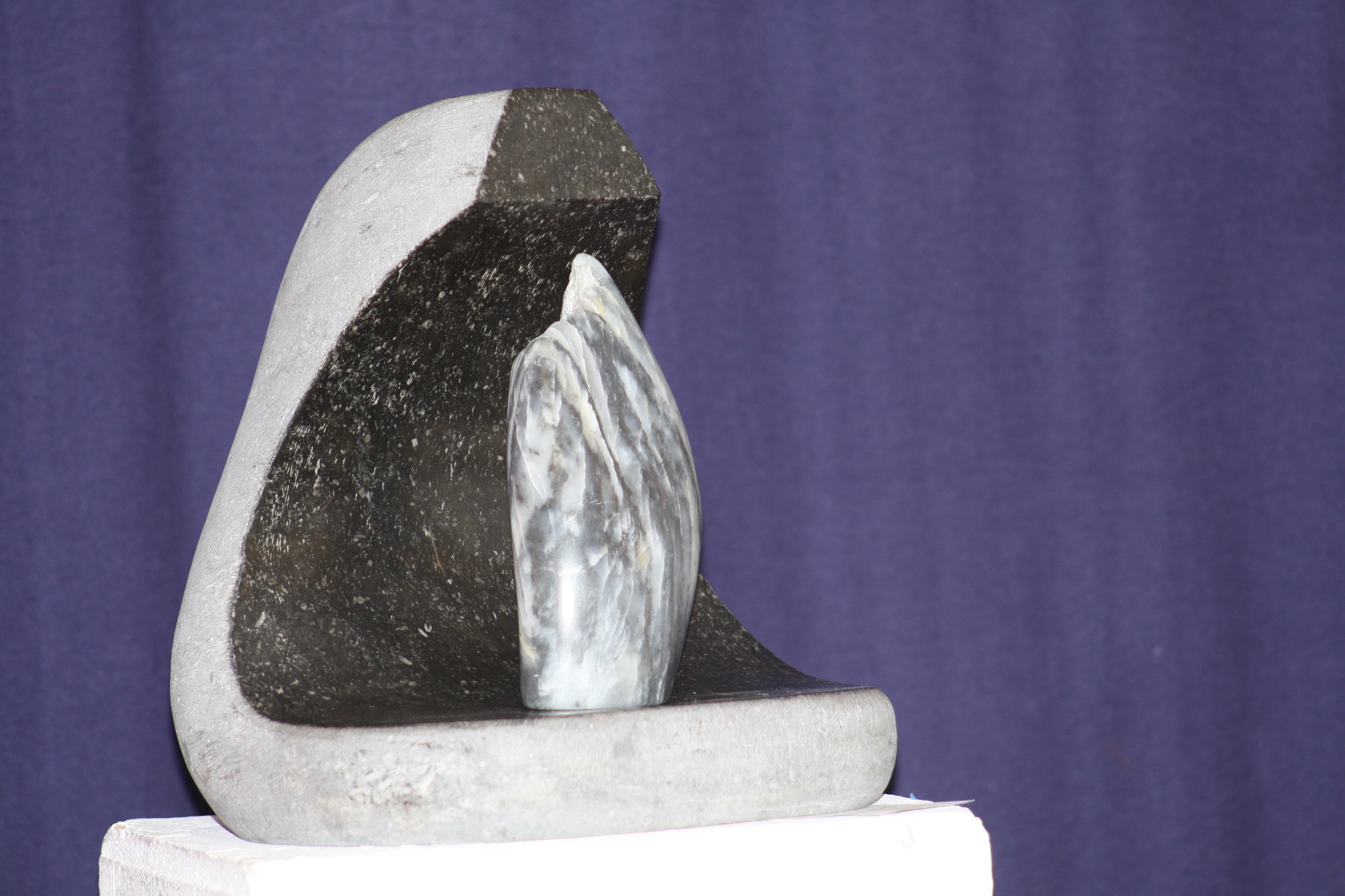 De basis steen is Belgisch hardsteen, de binnen punt is speksteen.