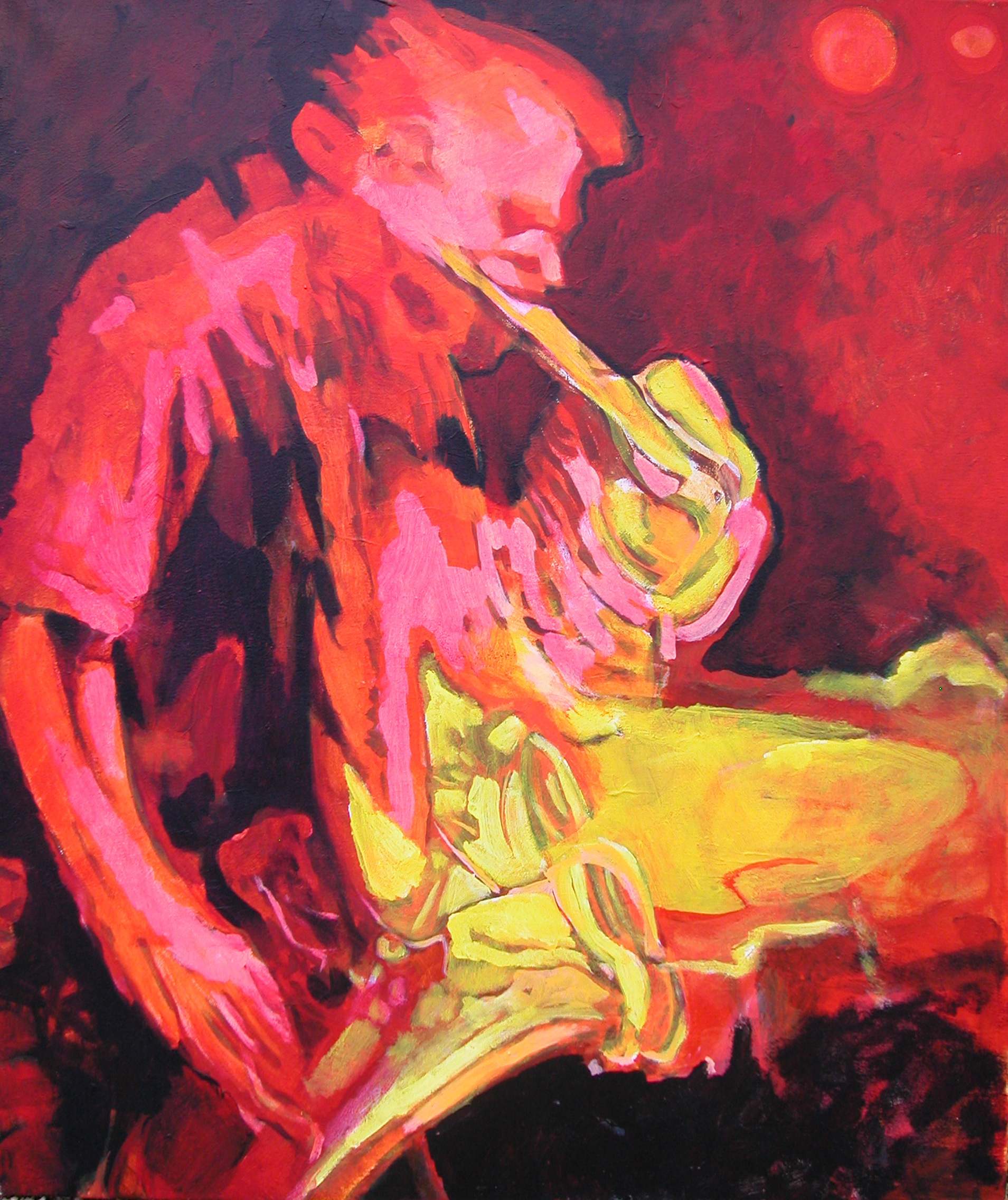 Figuratief Rood Oranje Expressief Beweging Improviseren Muziek Saxofoon Muzikant Blazer Jammen Drummen