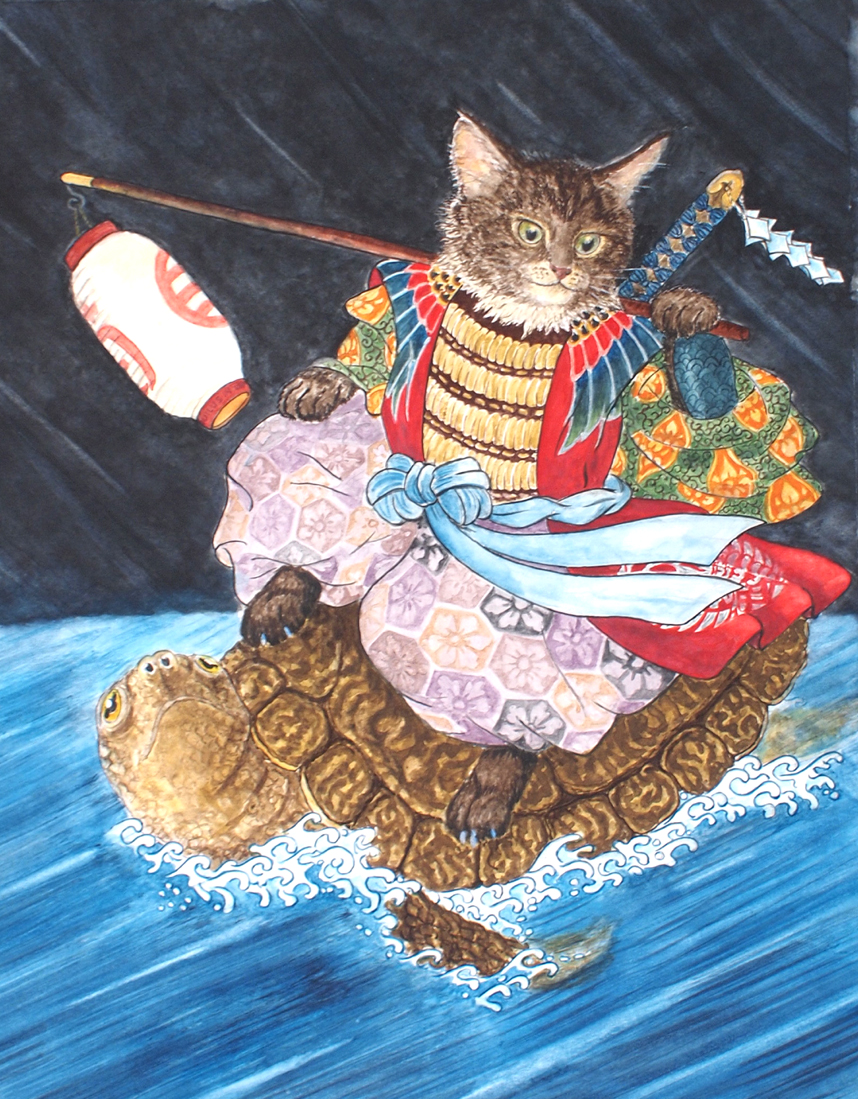 Arie de Jong (Alkmaar, 1961) verbindt in haar werk haar passie voor katten met haar interesse voor de Japanse cultuur en (krijgs)geschiedenis.