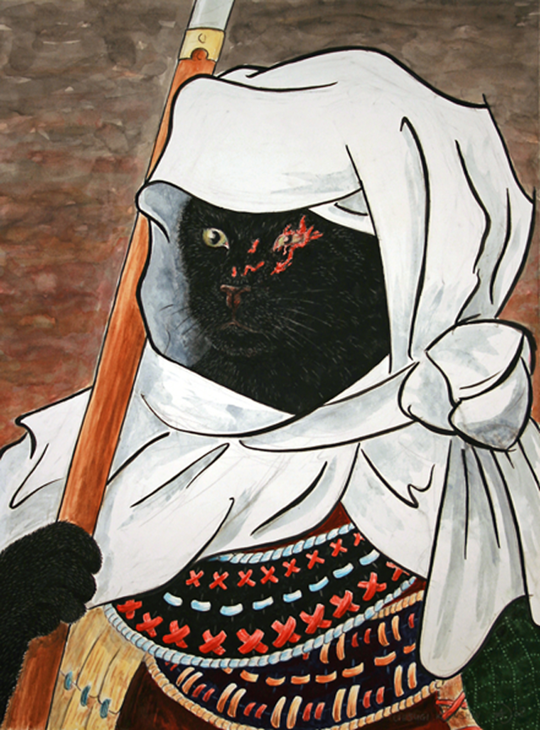 Portret Kat Aquarel Portrait Cat History Historisch Japan Uesugi Kenshin Echigo