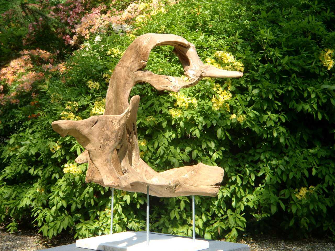 Abstracte figuur (of toch niet?) gemaakt van de stobbe van een eik. Een stuk hout dat al jaren in het bos heeft gelegen, en zonder behandeling goed buiten kan staan.