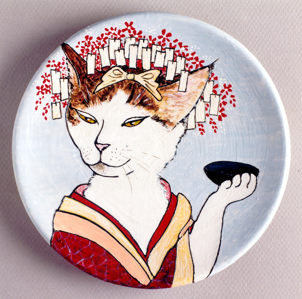 Wandbord Keramiek Glazuur Kat Geisha Cat Ceramics