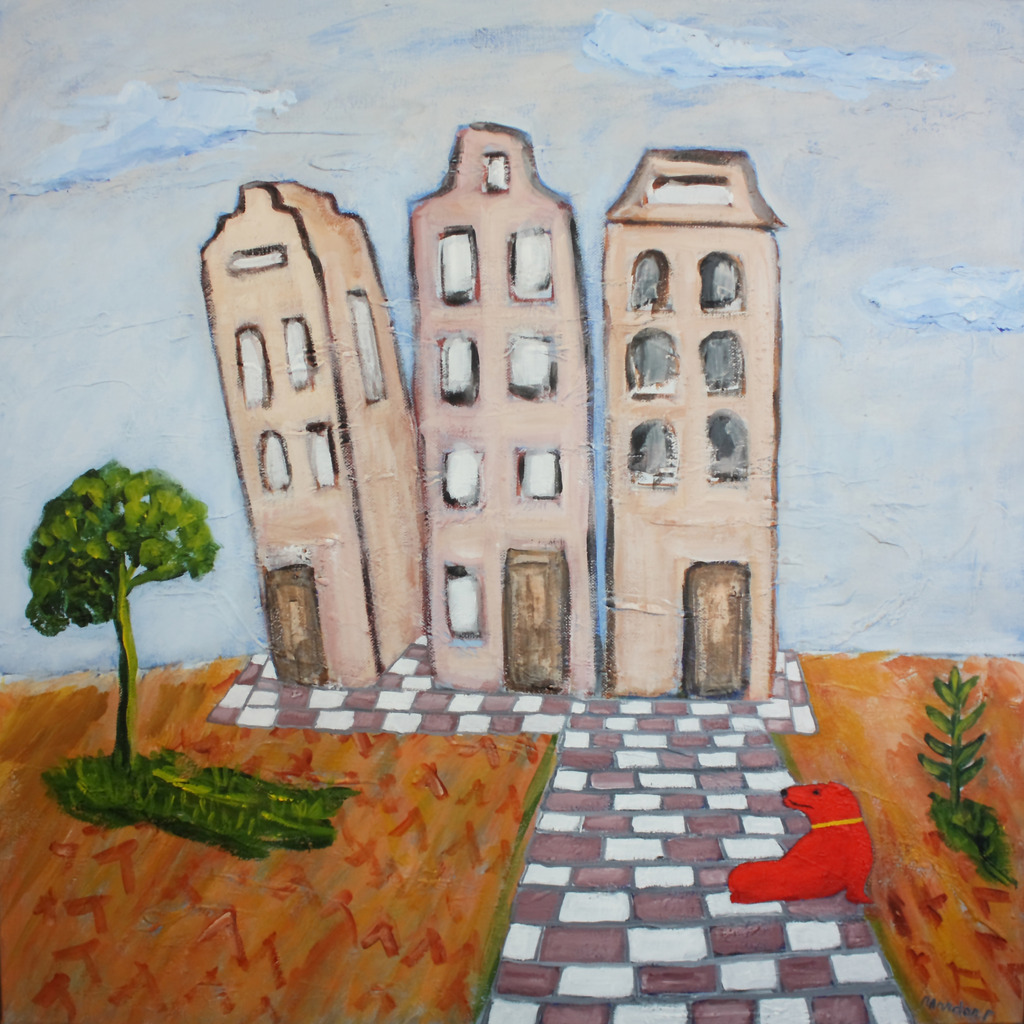 Figuratief Acryl Kleurig Hedendaagse Kunst Hond Architectuur