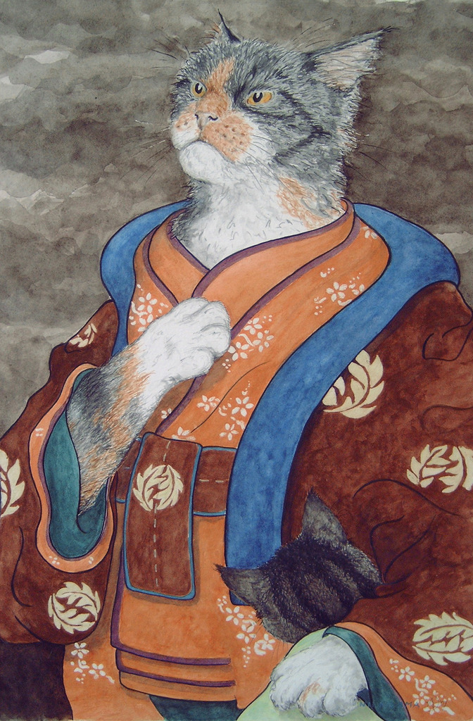 Arie de Jong (Alkmaar, 1961) verbindt in haar werk haar passie voor katten met haar interesse voor de Japanse cultuur en (krijgs)geschiedenis.