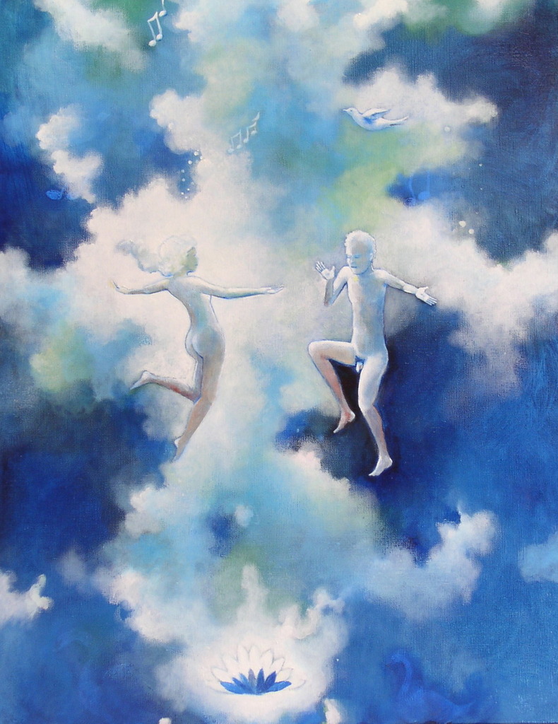 Wit Geel Blauw Groen Vrouw Man Water Lucht Plezier Muziek Duif Noten Lotusbloem