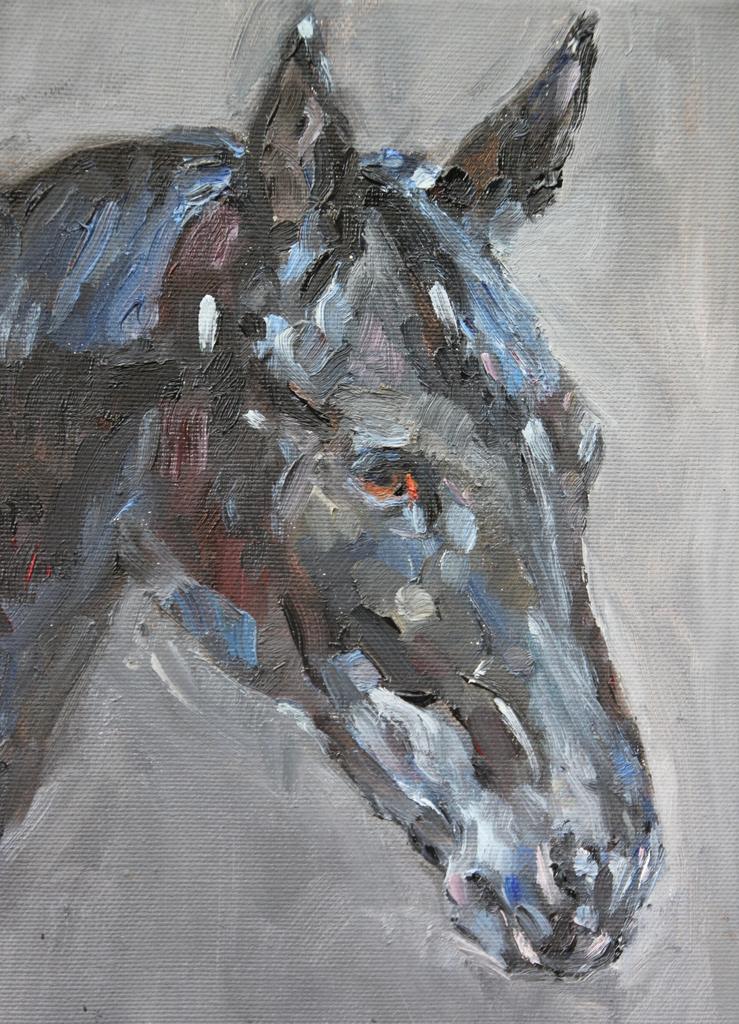 paardenportretten in opdracht olieverf op doek / tekeningen