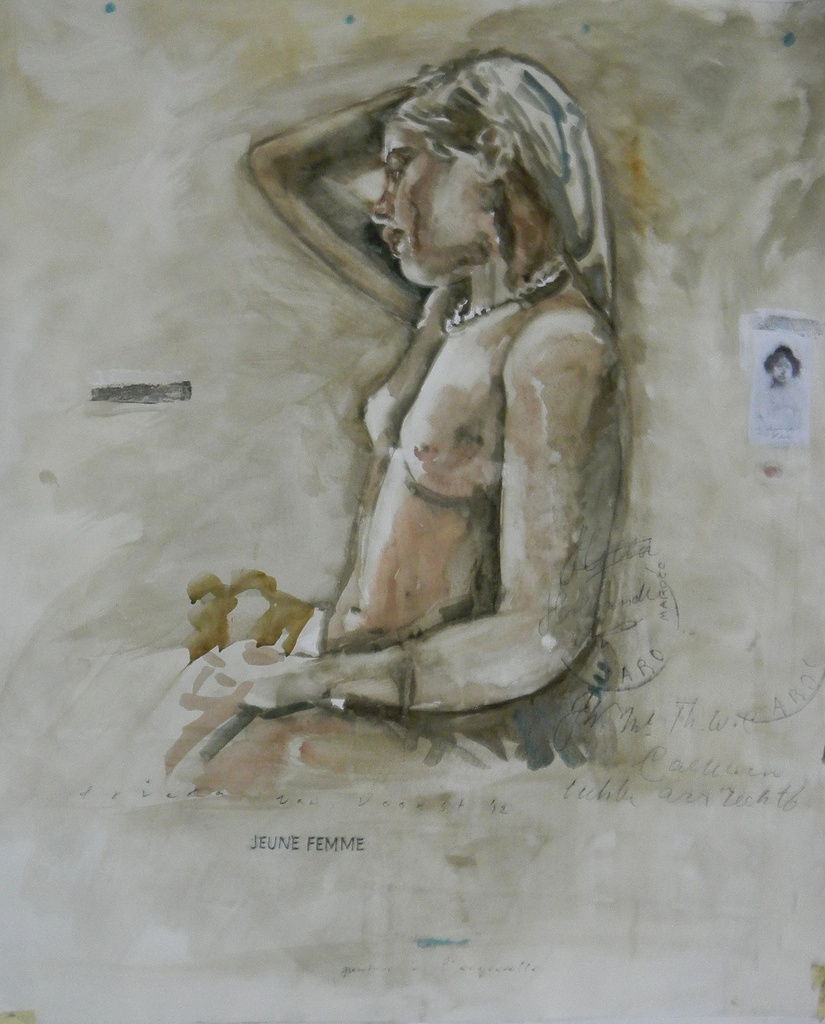 Naakt Aquarel Papier Realistisch Kleur Vrouw
