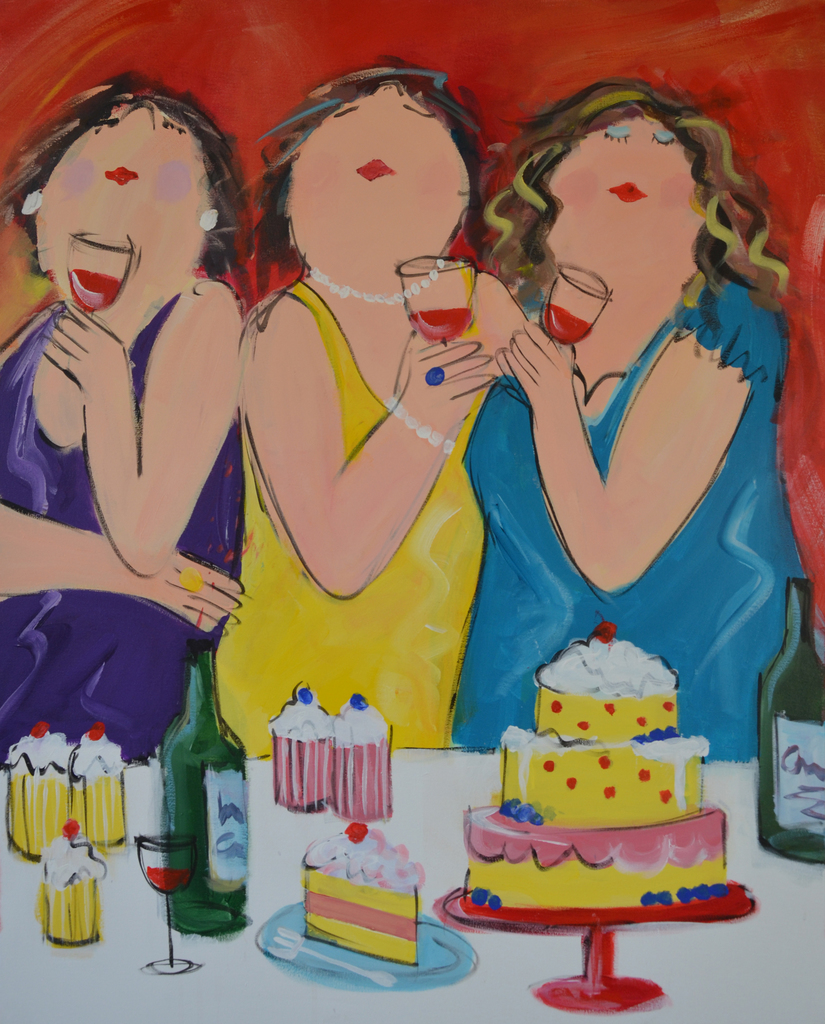 Schilderij Acryl Feest Kleuren Kleurrijk Dikke Champagne Feestje Taartjes Dames