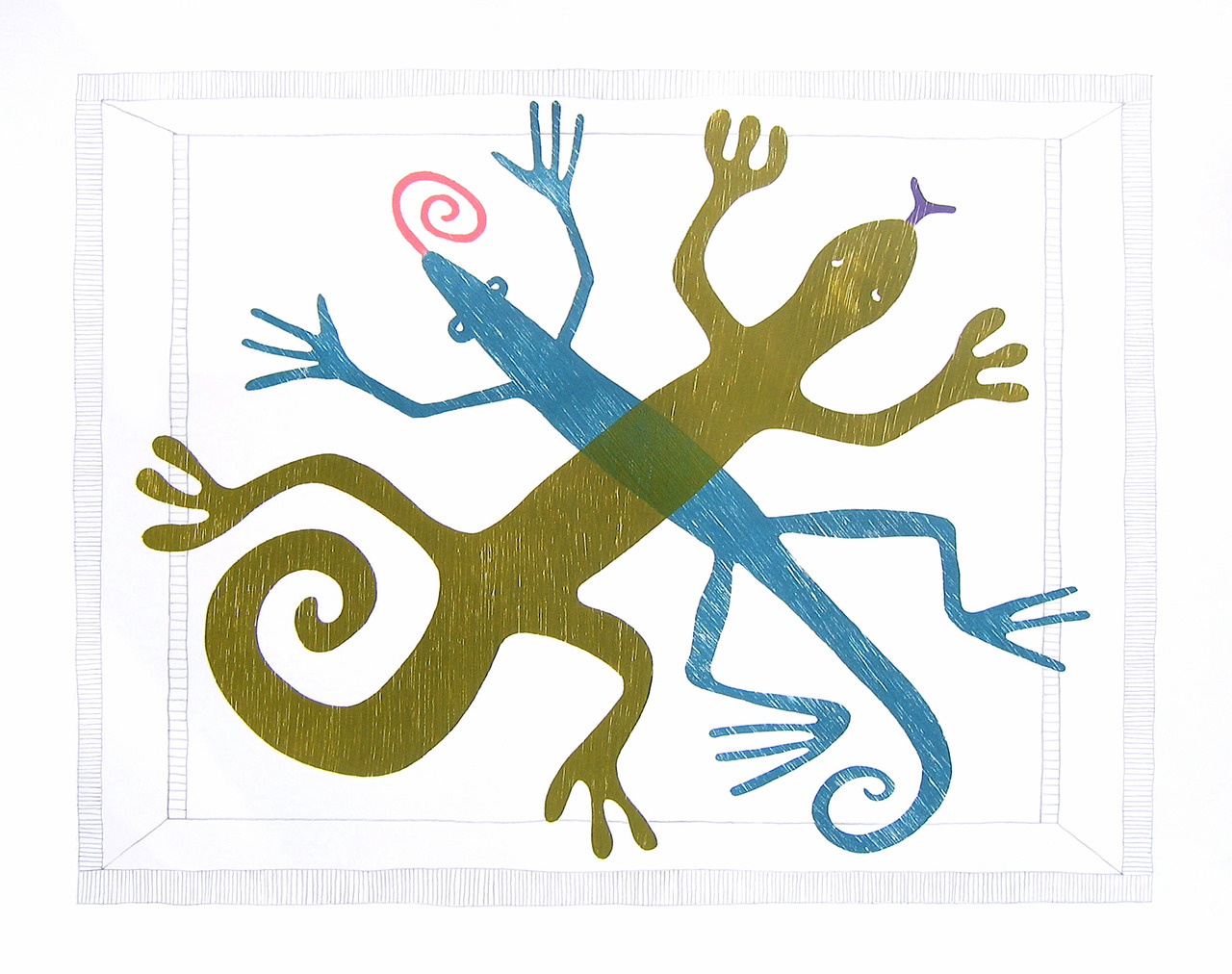 4 kleuren houtdruk met potloodtekening op papier. Oplage 4.
