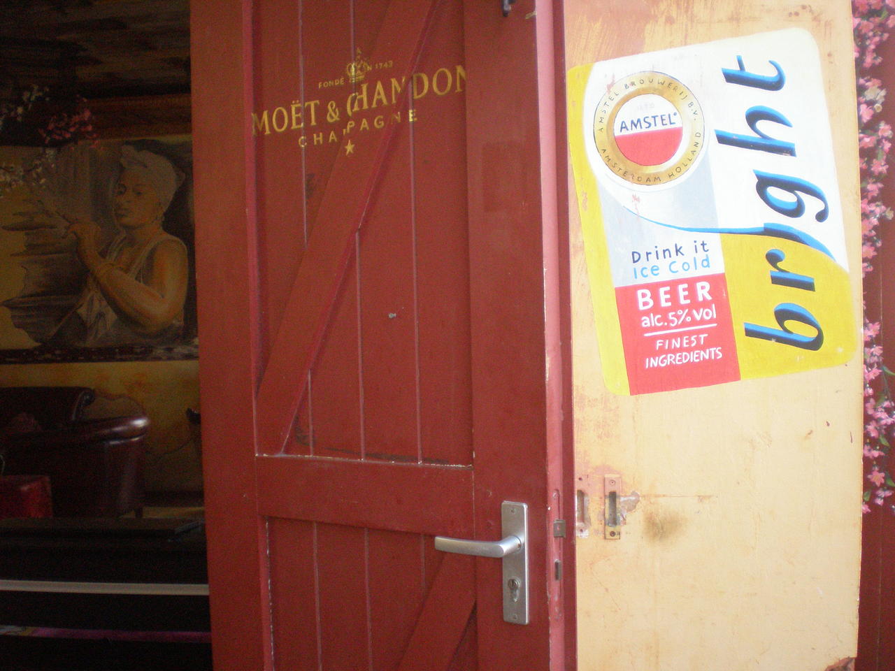 Reclame van een biermerk op de muur.