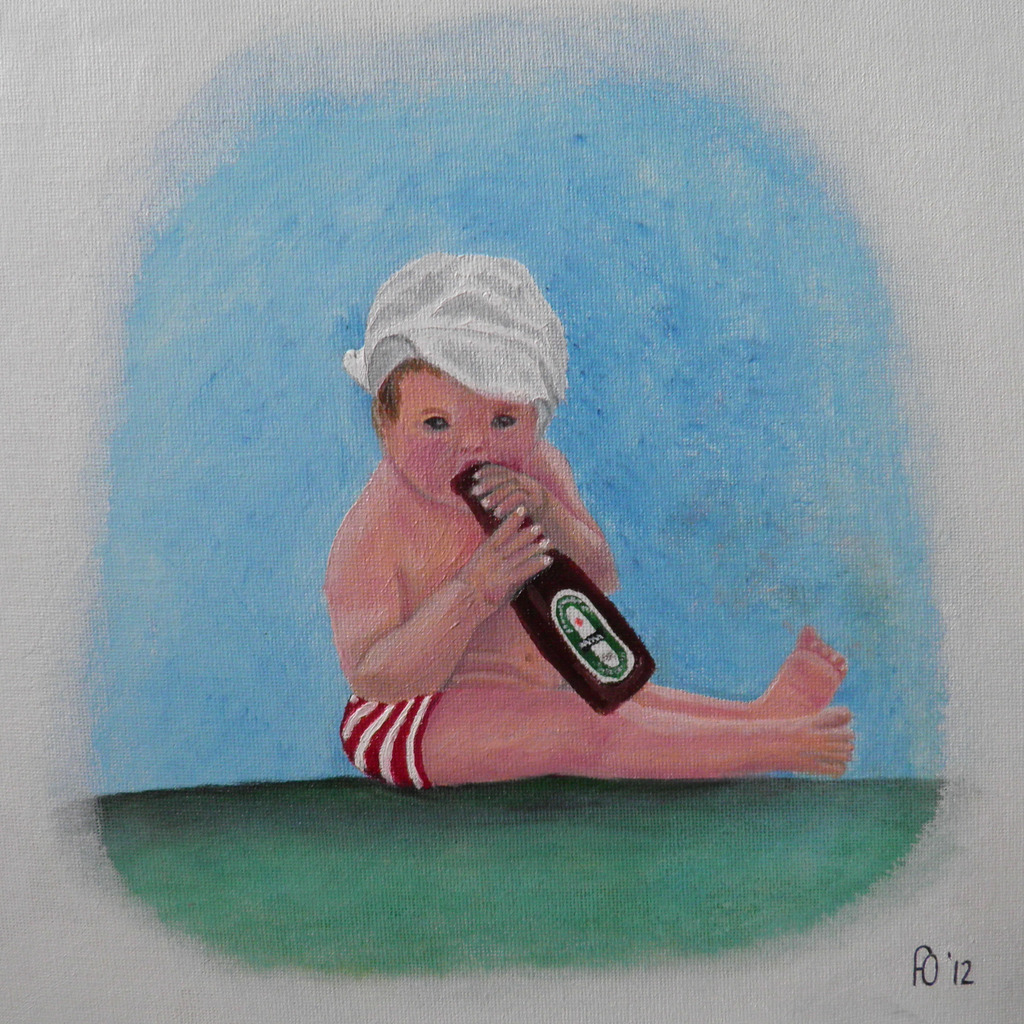 Mijn neefje Martin met een bierfles voor de mond (jong geleerd......).