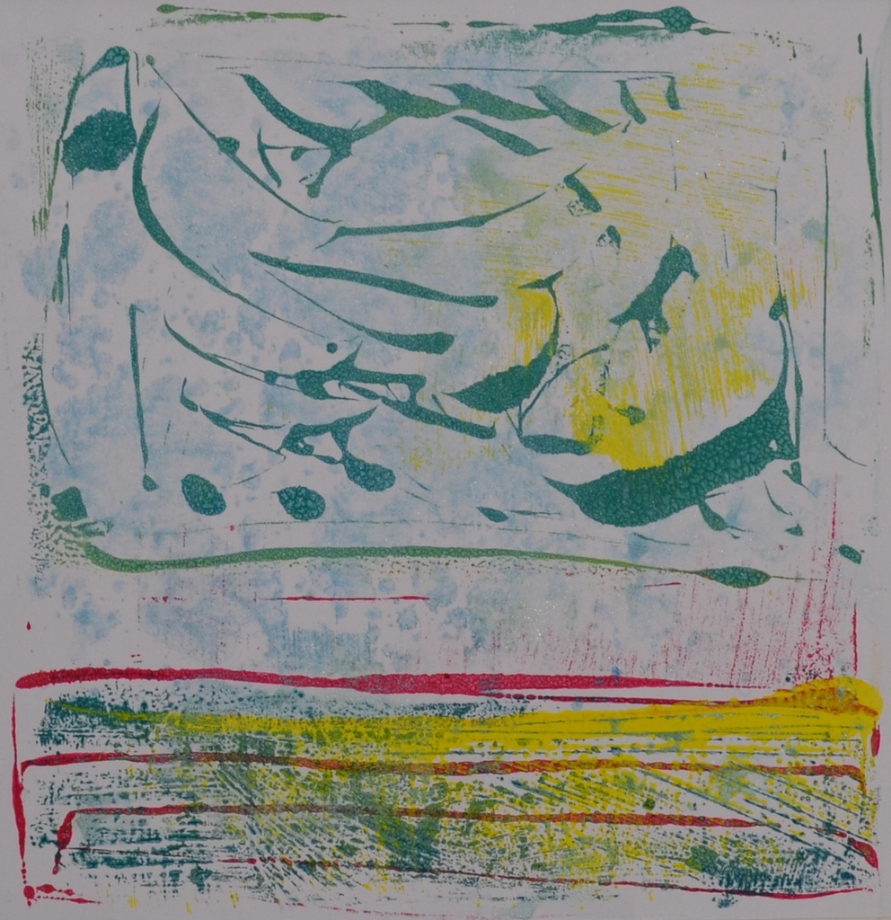 Deze drogenaald ets is gecombineerd met monoprint. De afmetingen van deze handgemaakte print zijn afgestemd op de ikea lijsten (ribba artno. 000.780.32) en passen perfect in deze passe-partout. Zo kun je zelf eenvoudig een lijst naar eigen smaak uitkiezen. prijzen zijn zonder lijst en passe-partout.
