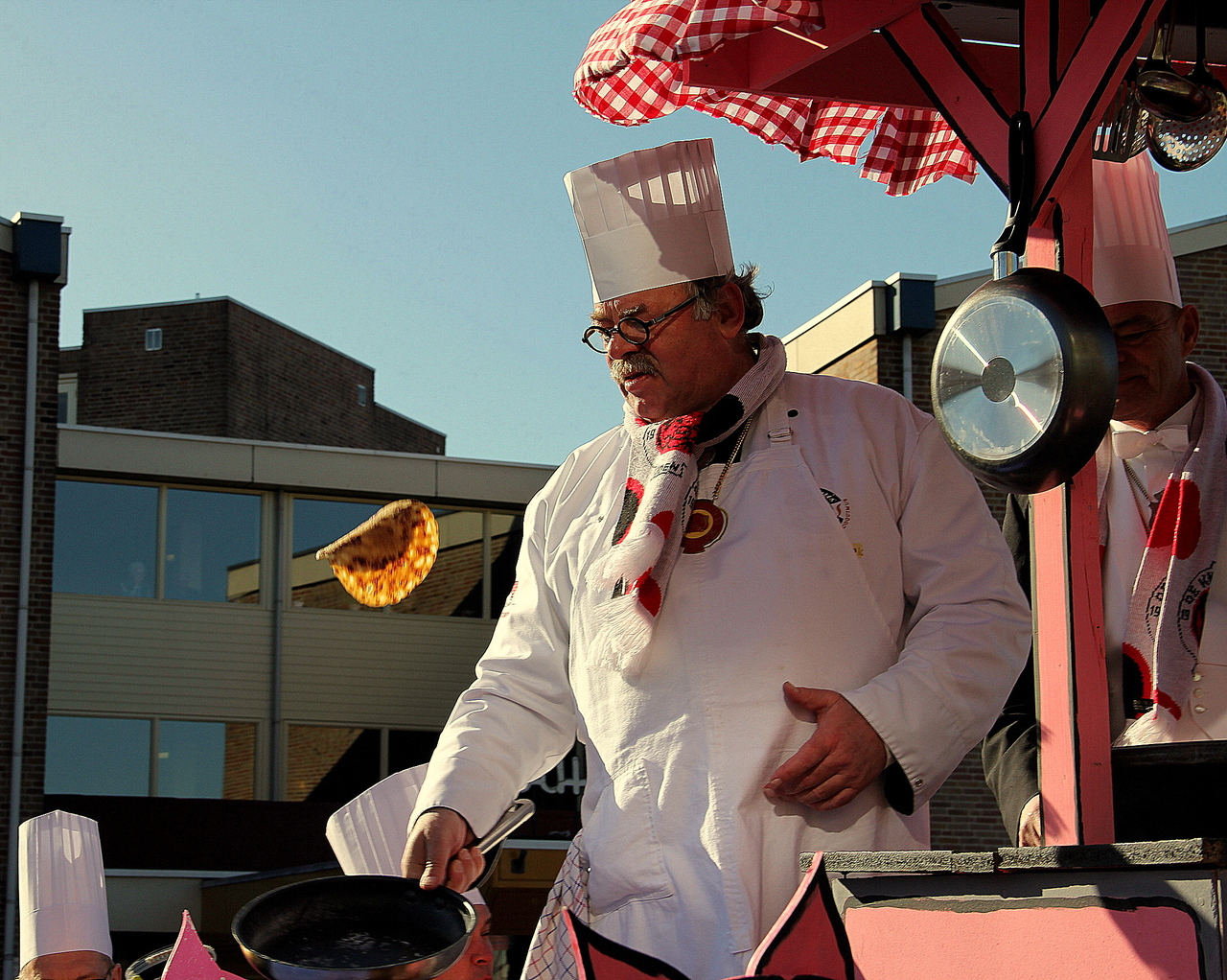 Pannekoekenbakker aan het werk tijdens Carnavalsoptocht