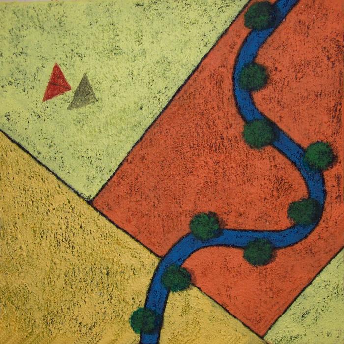 Acryl Kleur Zand Rivier Vlieger Bomen