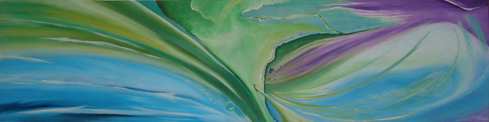 Een doek in opdracht. 200x50 cm, moest zowel liggend als staand "uit de verf komen".