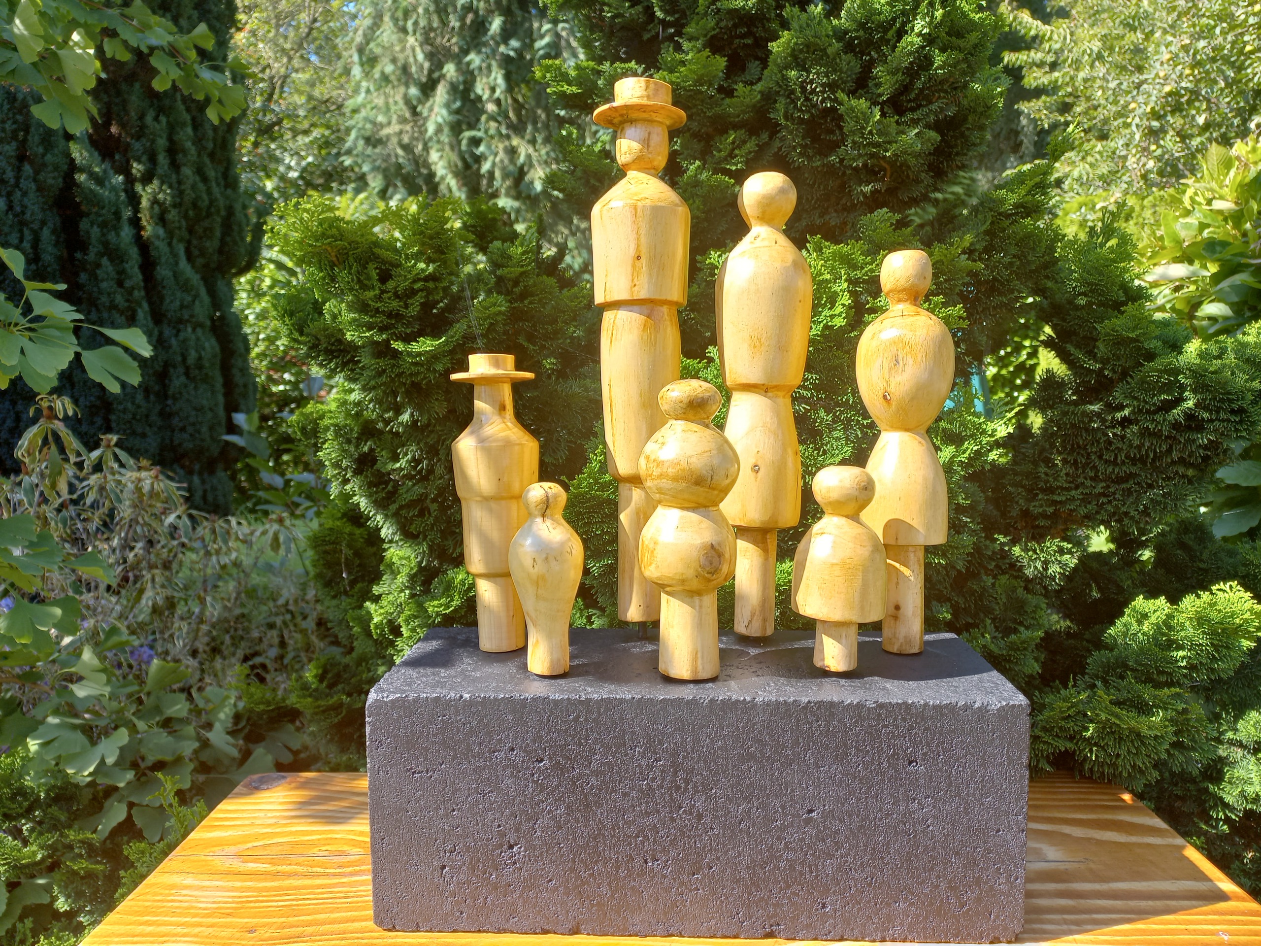 Deze spaanse familie is gedraaid van het hout van een Eucaliptusboom uit de tuin van mijn zoon Michel Tijdens het draaien kwam er nog een heerlijke geur vrij maar ook de tekening in het hout is zeer subtiel - boven verwachting is ook mooie gladde afwerking