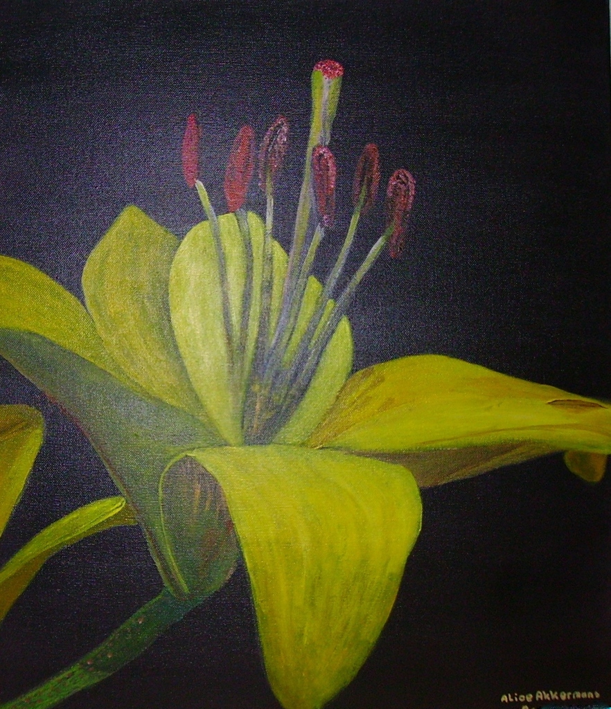 Haar schilderijen ontstaan door de indrukken om haar heen, zij maakt surrealistische schilderijen met veel zeggenschap, kleur en fantasie.