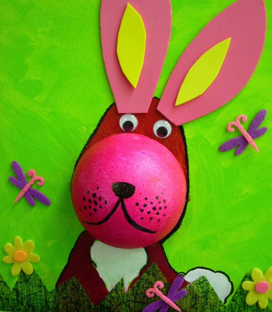 Paars Groen Dier Kunst Roze Gras Konijn Kinderkamer Babykamer Kinderschilderij Haas Babyschilderij