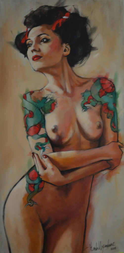 Rood Zwart Groen Naakt Woman Nude Red Green Bloot Black Beige Bodypaint China Dragon Chinese Body Erotisch Erotic Sexy Tattoo Taupe Hongkong Chinagirl