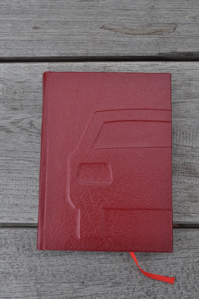Aantekenboek. Schutblad gestempeld met oude verkeerstekens. Bekleed met kunstleder.
