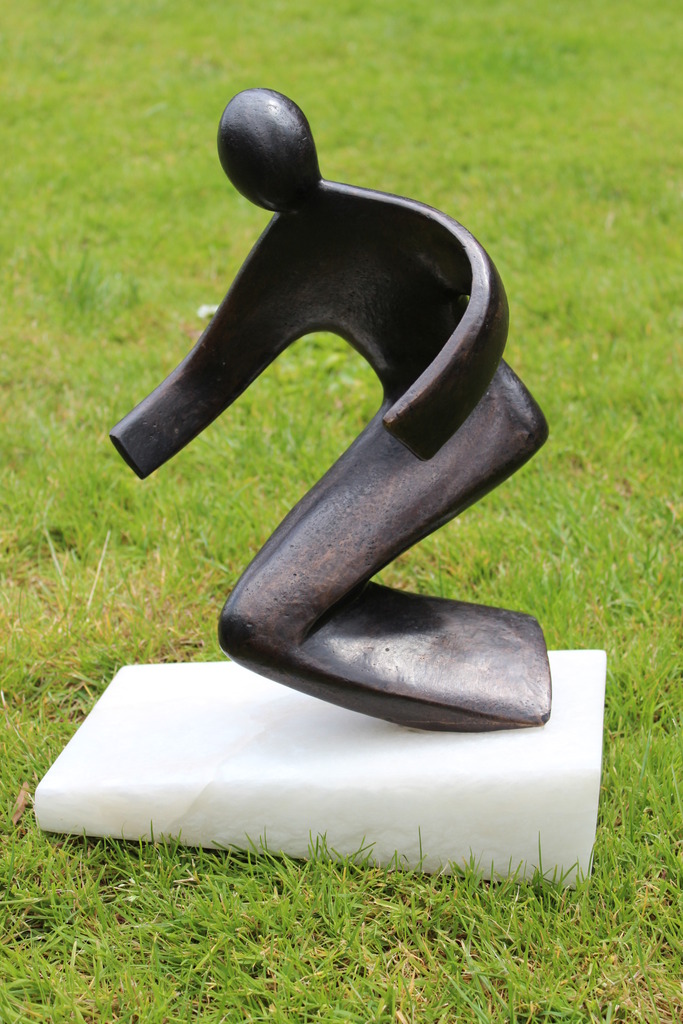 'Afdaling' : Beeld van brons. Met wit marmer voet. Eerst in steen gehakt. Daarna in brons gegoten.