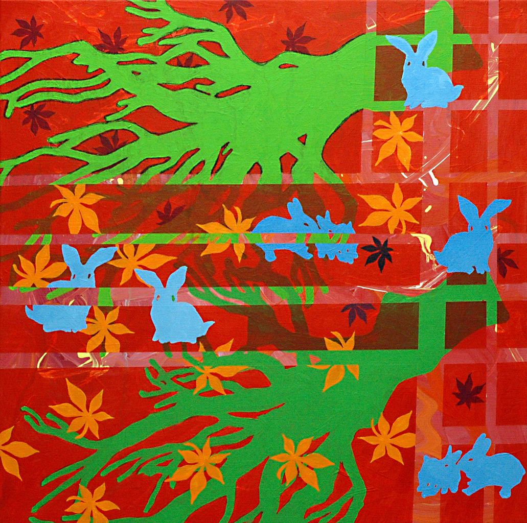 Abstract Rood Groen Bladeren Bomen Negatief Dood Leven Positief Grafisch Kans Konijnen