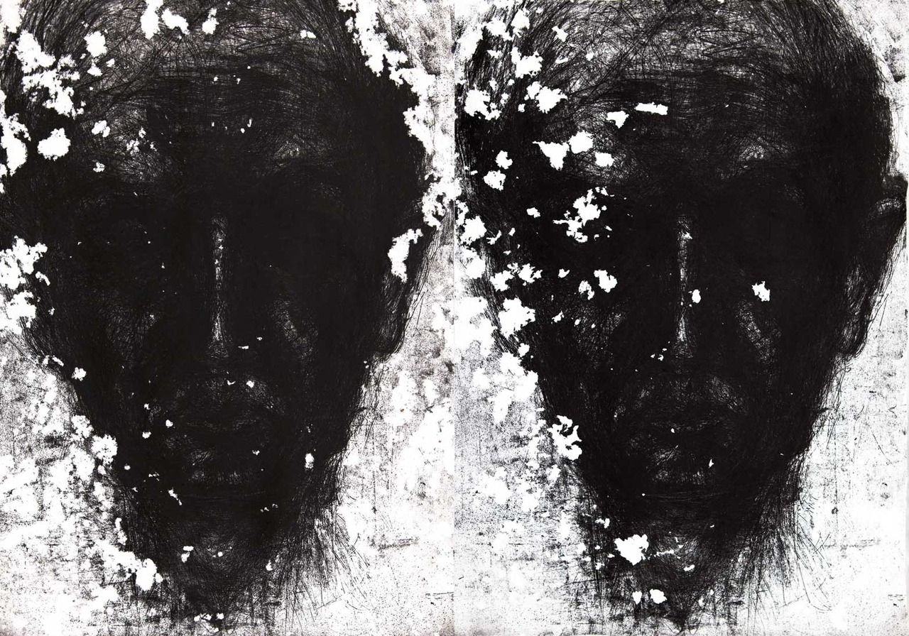 Portret zwart wit tweeluik in ets