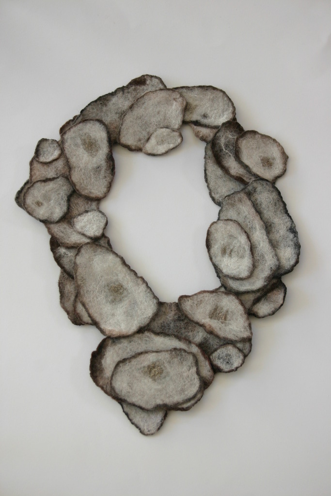 Het materiaal waar ik mee werk is wol dat ik vervilt tot draagbare kunst en viltpanelen. In mijn werk staat het onderzoek en experiment centraal. De natuur is mijn inspiratiebron