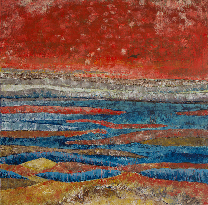 Surreel Zee Zon Rood Geel Landschap Blauw Vogel Yellow Sunset Blue Licht Red Light Sun Landscape Bird Boy Structuur Machteloos Oceaan Ocean Fel Gedachten Fire