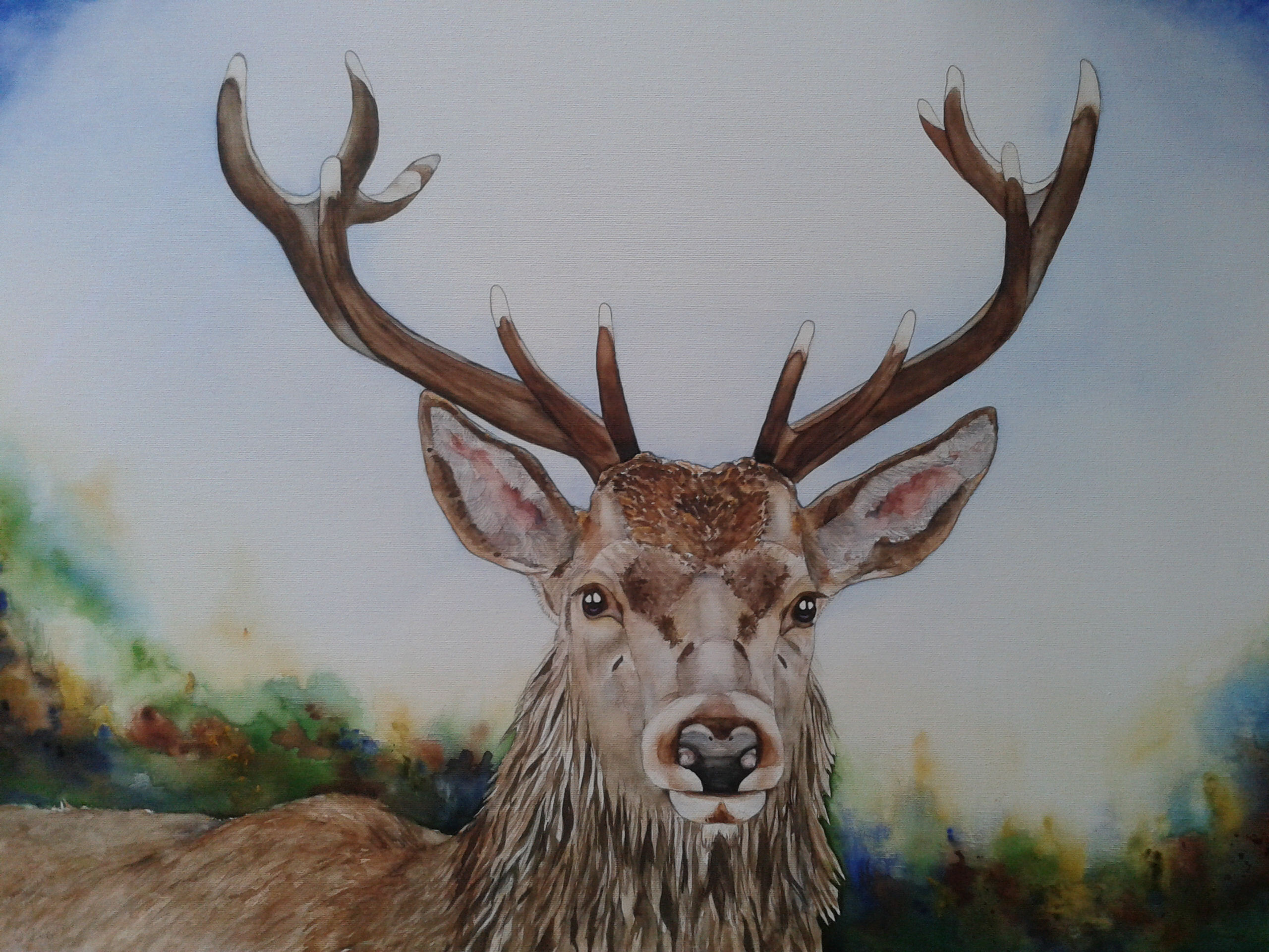 Schilderij Bruin Canvas Dier Aquarel Doek Op Kunst Hert Wild Herten Edelhert Watercolour Deer Landelijke