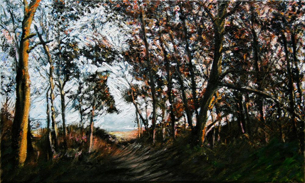 Het woord `ruimte’ is een sleutelwoord in het oeuvre van Karin Elfrink. Een aantal jaar geleden schilderde Karin Elfrink interieurs. Sinds een paar jaar heeft zij haar aandacht verlegd naar buiten, naar het landschap van haar jeugd. Dit landschap beschouwt zij eveneens als een ruimte, waar je deel van uitmaakt en die zeker niet willekeurig is: heden en verleden lopen door elkaar.